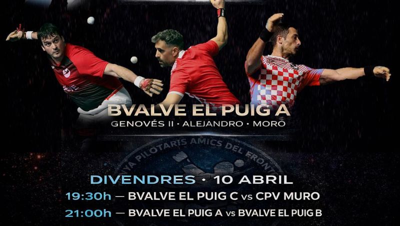 El Frontón J.A. Montesa volverá a ser el escenario de una noche vibrante, donde el eco de la pilota y el ambiente de grada recordarán por qué El Puig es uno de los municipios con mayor tradición en este deporte.