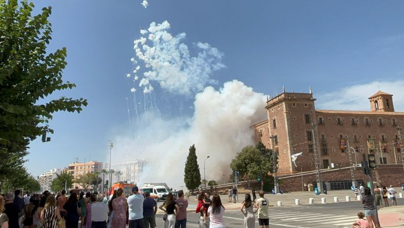 Al finalizar la misa, en el inicio de la Calle Mayor, se encendió la mecha que daba comienzo a la tradicional traca. Decenas de jóvenes y adultos corrieron por todo el recorrido hasta la explanada del Monasterio, donde se disparó una espectacular Mascletà a cargo de la Pirotecnia del Alto Palancia (Piroalpa). El estruendo, la emoción y el colorido pirotécnico hicieron vibrar a los asistentes.