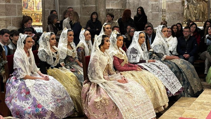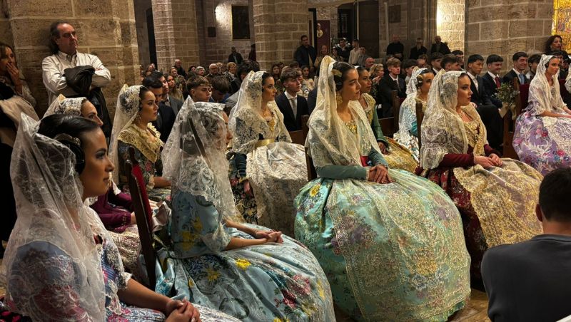 El lunes, día grande de la Purísima, comenzó con el tradicional volteo de campanas. A media mañana, las festeras fueron recogidas en pasacalles para participar en la solemne misa en honor a la Inmaculada Concepción, seguida de una mascletà en la Plaza del Cant Valencià.