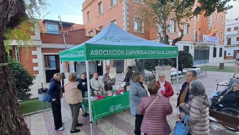 El pasado viernes por la tarde, la Junta Local de la Asociación Española Contra el Cáncer (AECC) organizó una merienda solidaria en la Plaza del Ayuntamiento, con el objetivo de recaudar fondos para la lucha contra esta enfermedad.
