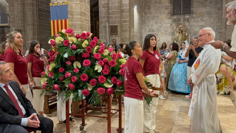 La ceremonia fue una de las más multitudinarias de los últimos años. Con respeto y emoción, fueron pasando uno a uno para entregar sus ramos a Don Melchor, párroco del municipio. Participaron entidades como La Falla Mar i ADJ, Trencall, Doctor Peset, Sant Antoni, Amas de Casa Tyrius, Cofradía, Sant Roc 2025, Purísimas…, además de la Corporación Municipal, los Clavarios y Camareras, y decenas de vecinos que quisieron rendir homenaje a la Patrona.