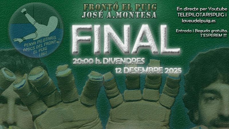 El Frontón Municipal José Antonio Montesa de El Puig será este viernes 12 de diciembre el gran escenario de la pilota valenciana con la disputa de la final del XIII Trofeo Mestres. Organizado por la Penya Pilotaris Amics del Frontó del Puig, el torneo alcanza uno de sus momentos más esperados del año, con una partida que se presenta como referente de emoción y prestigio. La cita reunirá deporte, tradición y fiesta en una jornada que promete ser inolvidable tanto para los jugadores como para la afición.