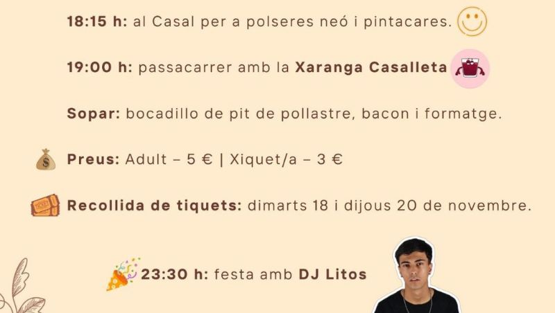 • 18:15 h – Taller infantil: En el Casal, los más pequeños podrán disfrutar de un taller de pintacaras y pulseras neón.