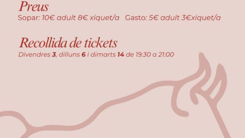 Los tickets para las cenas se podrán adquirir en el casal de la falla en los siguientes días: