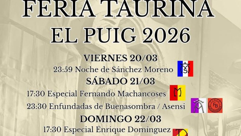 El domingo 22 de marzo la feria continuará con un festejo muy esperado por los seguidores del bou al carrer. A las 17:30 h, el recinto acogerá un especial de Enrique Domínguez, que traerá 15 animales con toro cerril, una propuesta que promete emoción y variedad para cerrar el primer fin de semana taurino.
