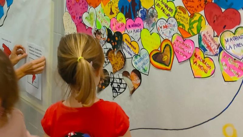 Siguiendo el proyecto transversal del centro para este curso, titulado “Som emocions, som connexió”, desde primera hora de la mañana se trabajó en las aulas (desde Infantil hasta 6º de primaria) una actividad centrada en descubrir qué es lo que más les gusta de la Comunitat Valenciana. Cada alumno y alumna escribió o dibujó su emoción dentro de un corazón, que posteriormente fue pegado en un gran mural con forma de mapa de la Comunitat Valenciana, creando una obra colectiva llena de color, sentimiento y orgullo.