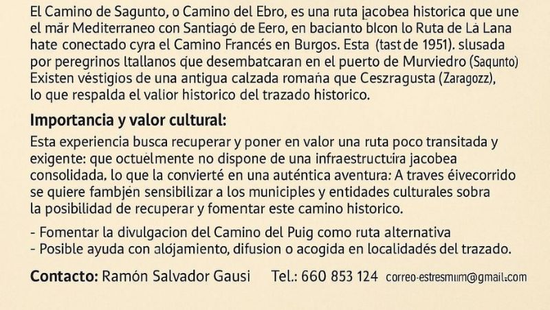 “Quiero que este reto sea algo más que un viaje personal. Mi ilusión es que todo El Puig se sienta representado en cada paso que dé hacia Santiago. Llevaré nuestro nombre y nuestra historia por cada pueblo y ciudad que atraviese.”