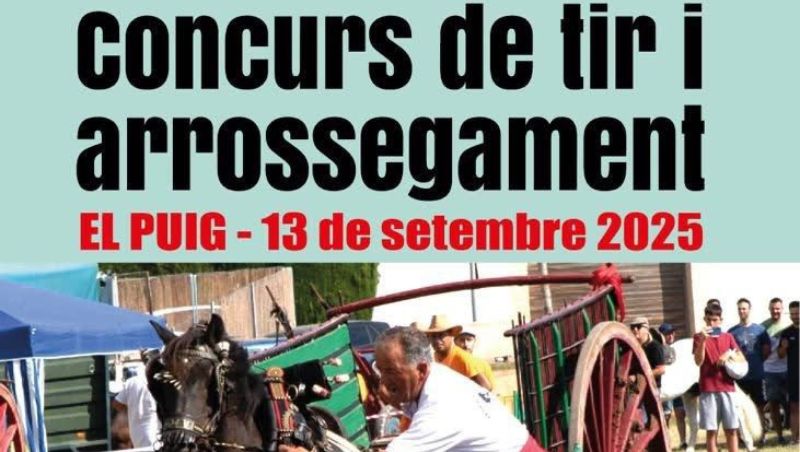 El 13 de septiembre a partir de las 10:00 horas, se celebrará el Concurso de Tir i Arrossegament en el campo junto a la residencia de mayores «La Saleta». Esta competición, organizada también por Sant Antoni El Puig, reúne a caballos y carreteros de toda la comarca en una jornada que combina destreza, esfuerzo y respeto por la tradición agrícola valenciana.