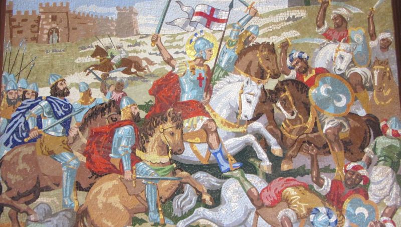 Tras la sorprendente victoria en la batalla de Enesa —donde las tropas de Bernat Guillem de Entença, con apenas 2.000 infantes y 200 caballeros, derrotaron a un ejército musulmán muy superior— los reyes de la Corona de Aragón y sus súbditos atribuyeron el triunfo a la intervención de San Jorge. Esta interpretación, forjada durante décadas, quedó registrada por primera vez en la Crónica de San Juan de la Peña (1369-1372), que afirma que en la contienda de El Puig “apareció Sant Jorge con muchos caballeros de paraíso que los ayudó a vencer la batalla”.